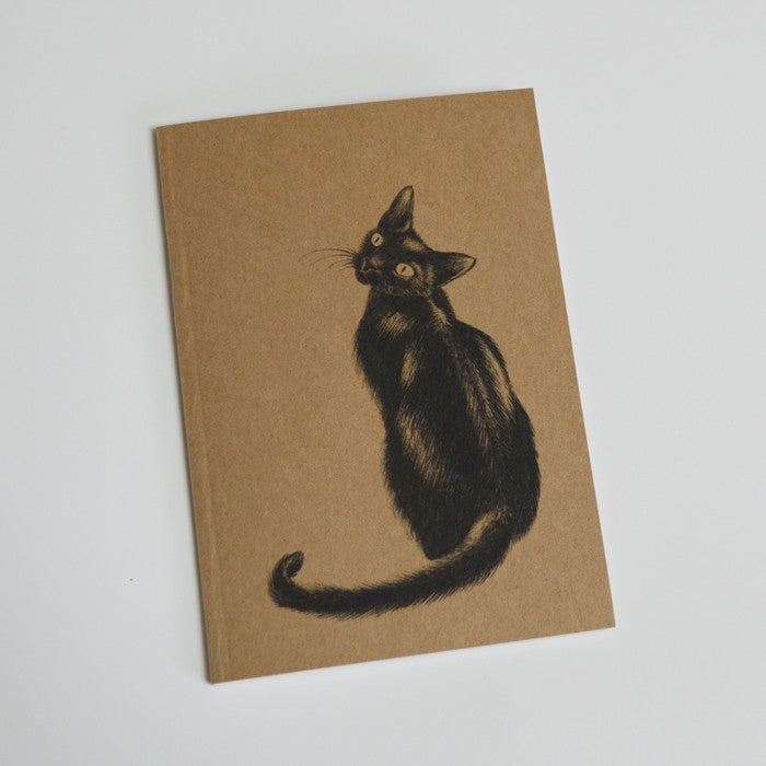 A copy of my slinky black cat ink drawing printed on a lovely A6 notebook.