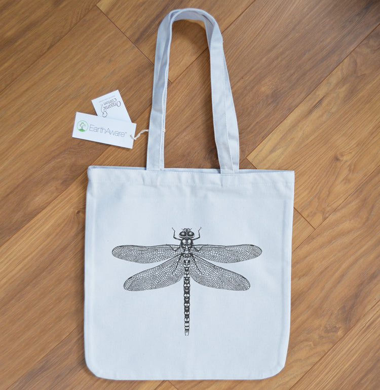 This dragonfly tote bag is made from organic, ethical certified cotton.