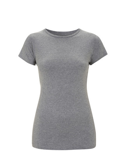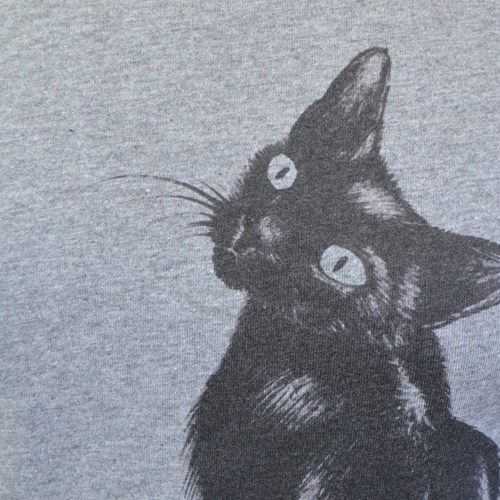 A slim-fitting tee printed with my black cat design. The soft cotton ladies t-shirt is melange grey.